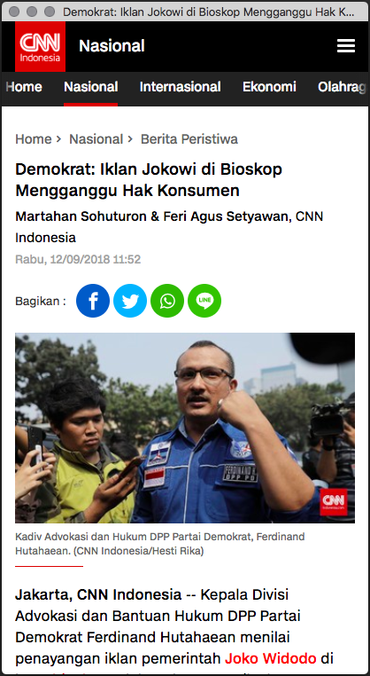 (GFD-2018-455) [BENAR] “Demokrat: Iklan Jokowi di Bioskop Mengganggu Hak Konsumen”