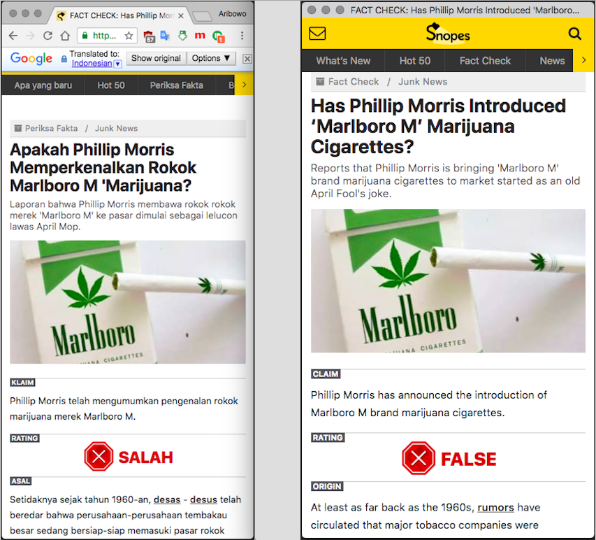 Hoaks di 2015 yang didaur ulang, Tribun: “‘Marlboro M’, Rokok Ganja Terbaru Harga Rp 1,2 Juta Per Bungkus Ternyata Kabar Hoax”. Selengkapnya di bagian PENJELASAN dan REFERENSI.