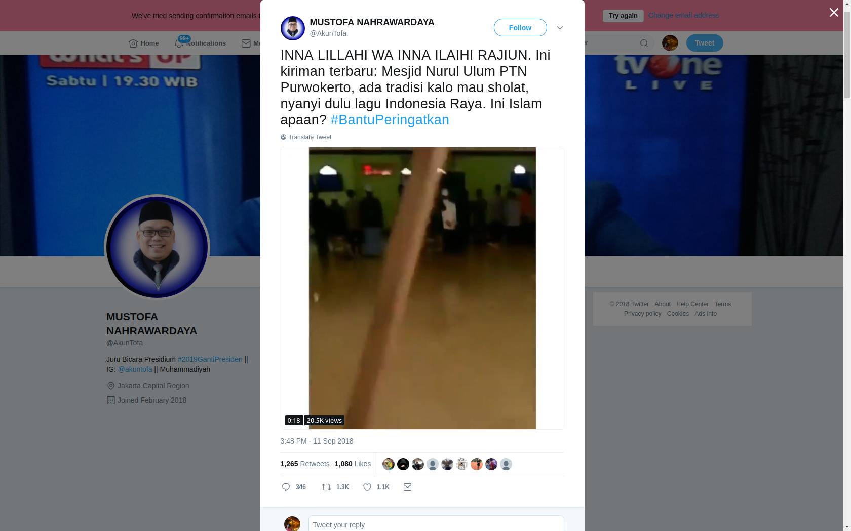 Beredarnya video yang memperlihatkan mahasiswa Universitas Jendral Sudirman (Unsoed), Purwokerto, Jawa Tengah, yang sedang menyanyikan lagu Indonesia Raya di dalam Mesjid Nurul Alam, ramai jadi bahan perbincangan warganet.