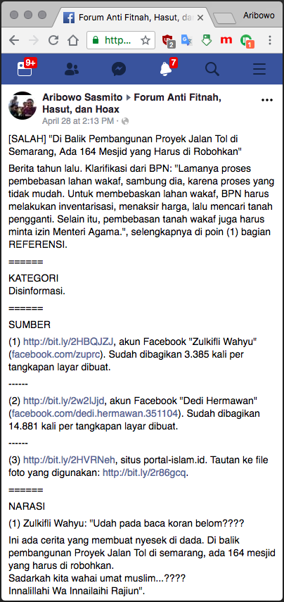 (GFD-2018-432) [DISINFORMASI] “Demi jalan tol masjid tempat kita ibadah pun mereka rubuh kan”