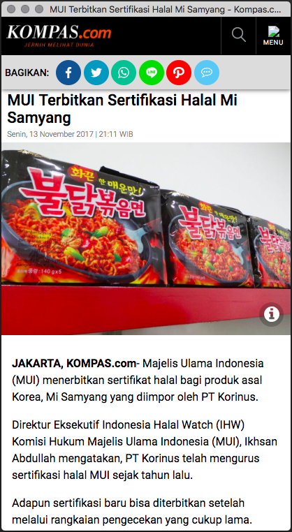 - https://megapolitan.kompas.com/read/2017/11/13/21115791/mui-terbitkan-sertifikasi-halal-mi-samyang