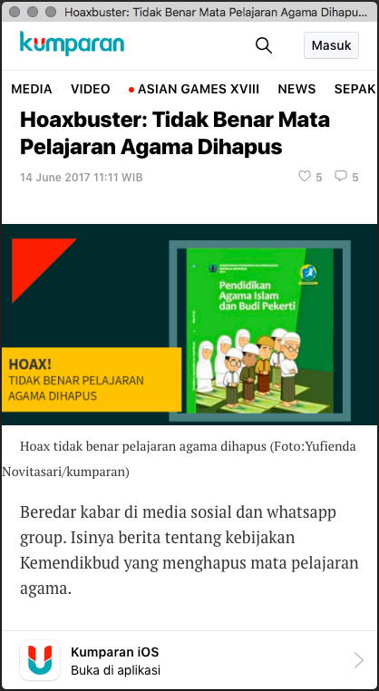 (GFD-2018-404) [DISINFORMASI] “Pendidikan Agama Akan Dihapus”