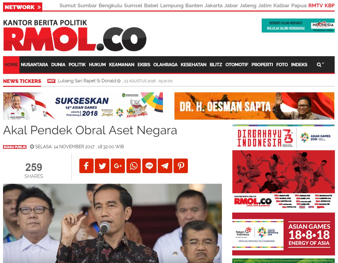 - https://www.rmol.co/read/2017/11/14/314453/Akal-Pendek-Obral-Aset-Negara-