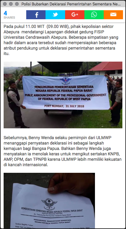 - https://www.kaskus.co.id/thread/5b601068dad770e7798b4570/polisi-bubarkan-deklarasi-pemerintahan-sementara-negara-republik-federal-papua-barat/