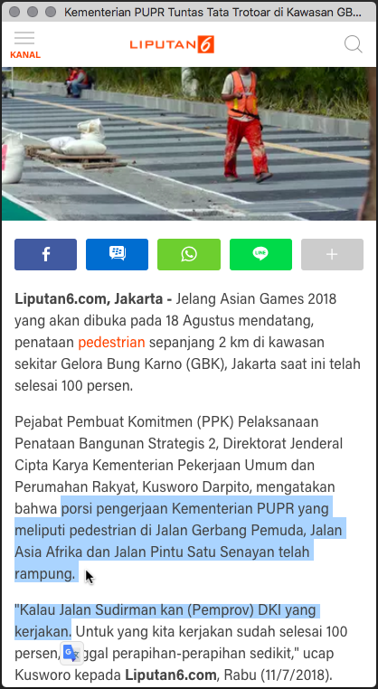 - https://www.liputan6.com/asian-games/read/3585323/kementerian-pupr-tuntas-tata-trotoar-di-kawasan-gbk