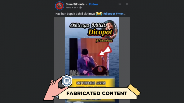 Unggahan video berisi klaim “perpisahan Menteri Bahlil dari Kabinet Prabowo” merupakan konten palsu (fabricated content).