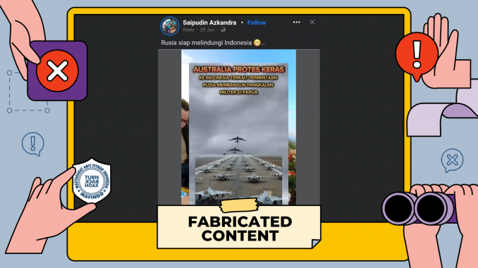 Unggahan berisi klaim “Australia protes keras dengar Rusia akan bangun pangkalan militer di Papua” adalah konten palsu (fabricated content).