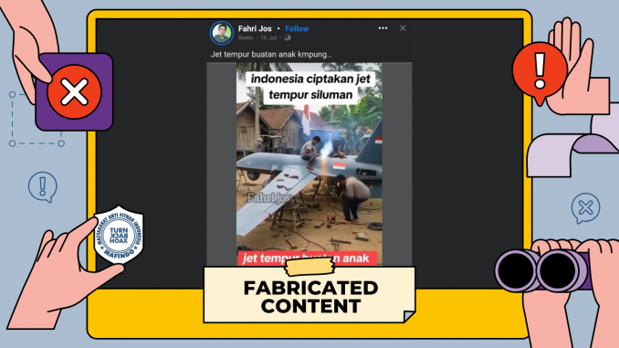 Unggahan video berisi klaim “pembuatan jet tempur siluman Indonesia” adalah konten palsu (fabricated content).