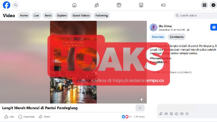 Tempo mendapatkan video asli yang menampakkan fenomena langit merah yang diunggah oleh akun Instagram Menezeman. Video itu direkam di jalanan Kecamatan Panimbang, Pandeglang, pada 18 Desember 2025. Lokasi video tersebut sama dengan lokasi yang direkam di Google Maps pada siang hari.