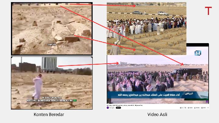 Tempo memverifikasi klaim tersebut melalui pencarian gambar terbalik Google dan membandingkannya dengan sumber tepercaya. Hasil penelusuran menunjukkan area dalam video adalah Pemakaman Umum Al Oud di Riyadh, yang memang digunakan untuk memakamkan keluarga kerajaan Arab Saudi.